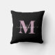 Almofada Nome do Monograma Elegante Preto e Roxo Moderno