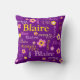 Um fundo gráfico roxo em negrito com flores gráficas e um travesseiro impressão de texto em caracteres personalizados. Atualmente lê Kelsey ou pode ser personalizado com seu próprio nome curto. Este padrão original de Sarah Trett www.sarahtrett.com para www.mylittleeden.com