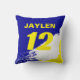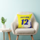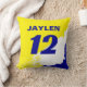 Personalize esse nome e combinação de cores numéricas, estilo de pincel de tinta azul, amarelo e travesseiro decorativo branco. As opções para alterar o tipo de fonte ou a cor do texto estão disponíveis. Ideal para uma caverna de homem, quarto de dormitório ou quarto.