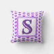 Este travesseiro monográfico é uma forma excelente de adicionar um sotaque colorido à sua casa ou criar uma guarnição especial para um casamento ou para um lar. Um padrão de bolinhas roxo brilhante aparece contra um fundo branco na frente e atrás deste travesseiro. A letra "S" aparece em um quadrado e pode ser personalizada rápida e facilmente. Design original - C. McGouldrick