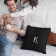 Monograma personalizado moderno e travesseiro decorativo elegante em preto e branco simples. ++++++++ Personalize-o com seu nome e letra inicial. Pode ser um presente elegante para um padrinho de casamento, melhor homem, namorado, marido, pai, tio num casamento, aniversário, Natal ou qualquer outro aniversário ou ocasião.