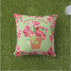 Ilumine seu espaço vivo exterior com este travesseiro decorativo decorativo. Gerânio potted das características deste design no vermelho e no rosa. Está acima um nome monogrammed para que você personalize. Projetado pelo ©Tim mundialmente famoso Coffey do artista.