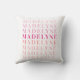 Este travesseiro personalizado apresenta um design de tipografia moderna com texto rosa e coral. Personalize o texto com seu nome ou outro texto.