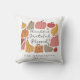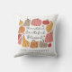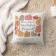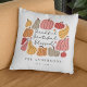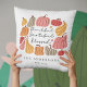 Um travesseiro bonito com abóboras e a frase "Graças a Deus abençoado" - personalizado com um nome de família e data estabelecida.