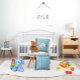 Este travesseiro decorativo bonito é perfeito para o quarto e sala de jogos de bebês ou crianças. Design de um lado com um sutil design geométrico no verso. Em tonturas de azul com um nome personalizável. Seria um presente pessoal excelente para um pequeno.