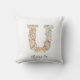 Nome Personalizado e Travesseiro decorativo 'U' do Monograma Floral.