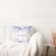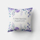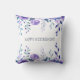 Elegante travesseiro "Reforma Feliz" com o nome do funcionário reformado nas costas, juntamente com o mês e o ano da reforma. O travesseiro tem um elegante quadro floral de flores violetas roxas com folhas verdes-azuladas.