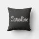 Este travesseiro decorativo personalizável apresenta um fundo preto com um nome de script branco na moda para um eterno e aparência moderna. Perfeito para adicionar um toque pessoal ao seu espaço, quarto ou escritório. Uma ideia de presente de excelente para quem ama a decoração minimalista com uma estética ousada e contemporânea.