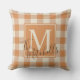 Modelo de xadrez de abóbora de outono, estilo de fazenda, cor de laranja e marfim esbranquiçada, com a opção de personalizar ou personalizar com um monograma familiar e nome ou texto (limitado) da sua escolha. Bonito e divertida almofada ao ar livre para enfeitar o seu pátio ou a varanda de cabana com o qual se sente e fique no clima para a temporada de outono, o feriado de Ação de Graças e o Halloween.
