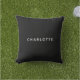 Um travesseiro preto ao ar livre com o seu nome. Digite TODOS os BONÉS para alcançar esse efeito com esta fonte na moda arredondada moderna. Personalize o espaçamento das letras conforme necessário. Adicione seu próprio monograma, nome ou foto para criar um travesseiro decorativo personalizado. Design moderno minimalista para ela ou para ele.