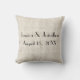 Personalize este travesseiro decorativo bonito com os nomes dos noivos e a data do casamento no fundo de linho bonito do olhar. Você pode facilmente mudar o estilo de pia batismal se desejado. Um presente maravilhoso da lembrança para o casal feliz!