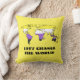 Customizable throw pillow with the map of the world in the color of the non-binary pride flag, a design on a yellow background; the text 'Let's Change the World' is a template text and can be changed.