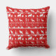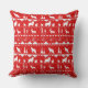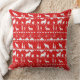 Um travesseiro decorativo vermelho e branco com um padrão de blusa de suéter nórdico de animais brancos de inverno.