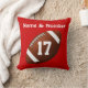 NÚMERO DO SEU NOME E Jersey em Travesseiros de futebol vermelho na FRENTE e NAS COSTAS. Personalize UM Travesseiro de futebol de cada vez, ADICIONE AO CARTÃO e depois volte para o próximo. Ligue para Linda e eu podemos personalizá-lo para você sem nenhum custo extra.239-949-9090