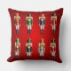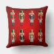 Este travesseiro vermelho festivo decorado em cada lado com duas fileiras de soldados de brinquedo de noz do nutcracker em uniformes coloridos do hussar é o acento ideal que avivará toda a sala durante a época natalícia. Igualmente faz um presente perfeito do Natal para a família e os amigos.