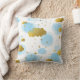 Almofada Nuvens de Aquarela Azul Douradas Estrelas Céu