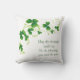 Este travesseiro decorativo manda um impressão verde bonito da videira do trevo e uma frase irlandesa velha de "maio as bênçãos cada dia ser as bênçãos que você precisa o a maioria". Em uma cor branca do fundo.