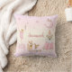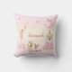Este belo travesseiro de berçário apresenta a bailarina Nutcracker Suite, um ursinho de pelúcia, dois veados-bebê (fawns), um preguiçoso e um coelho. O fundo é um pequeno padrão bolinhas de cor-de-rosa e amarelo. Estrelas estão brilhando no céu junto com a lua. Você personaliza com o nome do bebê no centro. O lado inverso é um padrão de estrelas rosa e branca. Que belo presente que isso traria para uma nova menina! Outros elementos de coordenação para a creche estão também no nosso compro!