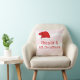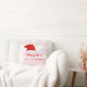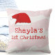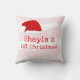O Primeiro travesseiro de Natal do Papai Noel Floco de Neve Rosa. Primeiro design de Natal do bebê bonito com chapéu de Papai Noel, listras cor-de-água rosa, flocos de neve e um nome de bebê em um roteiro branco - personalize com o nome do seu bebê.