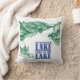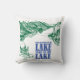Um travesseiro lago-inspirado legal que leia "o que acontece nas estadas do lago no travesseiro do lago" em verde e no azul. Uma grande adição ou presente para alguma casa do lago!