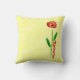 Travesseiro decorativo personalizado com uma adorável rosa vermelha com caule verde e folhas verdes. Posicione seu nome para personalizar seu travesseiro decorativo. Parece um olhar de arte. As cores de fundo são verdes-claras na frente, com um aspecto fractal. O fundo tem um fundo amarelo com o mesmo, fractal. Isso torna o travesseiro reversível. Um belo presente de Dia de as mães.