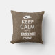 Este travesseiro customizável do vaqueiro diz mantem a calma e monta-a sobre. Tem uma imagem de um chapéu de vaqueiro em vez do logotipo da coroa.