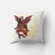Fada vitoriosa galesa, de cabelos negros, toda em vermelho e ouro num pano de fundo branco com polvo amarelo