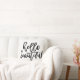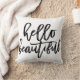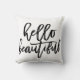 Características deste design a frase "olá! bonita" em um preto, roteiro escrito à mão moderno. A cor do travesseiro pode facilmente ser personalizada para combinar sua decoração.