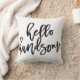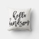 Características deste design a frase "olá! considerável" em um preto, roteiro escrito à mão moderno. A cor do travesseiro pode facilmente ser personalizada para combinar sua decoração.