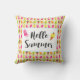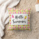 Travesseiro com imagem de um padrão de tempo de Verão de picolés e sorvetes em aquarelas. Olá Summer escreveu em uma fonte de tendências divertida.