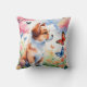 Pintura aquosa de um cachorro adorável cercado por flores e borboletas.
