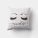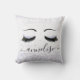 Belo e elegante travesseiro com pestanas em fundo de diamante, capaz de ser personalizado com seu nome ou negócio. Um item de decoração de excelente para o seu sofá, quarto ou lugar de negócio na indústria da beleza.