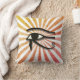 O antigo símbolo egípcio, o Olho de Horus. Retro Sun desenhando em segundo plano. Travesseiros decorativos personalizados. Ideia do presente.