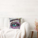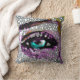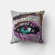 Uns olhos azuis glamoroso espreitam fora de um teste padrão estrelado neste travesseiro funky.