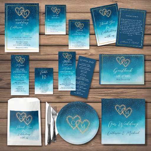 Apresentando nossa design de casamento azul-d'água do oceano, perfeita para qualquer casamento costeiro ou ao lado da praia. O fundo azul de aquarela imita as lindas ondas oceânicas, criando um cenário sereno e tranquilo para o seu grande dia. A combinação de azul e branco adiciona um toque clássico e eterno ao design, enquanto os sotaques de ouro elevam o olhar geral para um nível mais sofisticado. Esta design é perfeita para um casamento monográfico, já que as iniciais da noiva e do noivo podem ser apresentadas elegantemente no centro do produto. Os detalhes azuis do marinho adicionam um toque de charme náutico, perfeito para um casamento de verão pelo mar. Com a sua bela design inspirada na onda da praia, a nossa suíte de casamento azul-água do oceano vai dar o tom para o seu casamento costeiro, criando um pano de fundo perfeito para o seu dia especial.