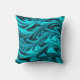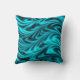 Um coxim com um teste padrão azul e preto vibrante nas máscaras da turquesa brilhante que protegem ao preto em listras onduladas curvadas, como ondas rippling, com protecção mais escura para um olhar da seda ou do cetim. Note por favor: este não é tecido do cetim mas um design impresso.