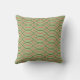 Este travesseiro decorativo tem um design de Boho de ondas verdes e laranja em um campo verde-claro.
