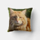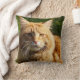 Este travesseiro tem uma foto de um gato de casa laranja giro nele.
