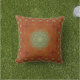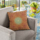 Um travesseiro magnífico de design Mandala em laranja quente queimada, vinho tinto, pó empoeirado e verde-sábio. O Mandala em ondas centrais é colocado sobre o mesmo título abaixo, criando um pequeno ponto circular e um fundo mosaico cruzado para o azulejo maior. Um design e uma paleta de cores influenciados no leste.