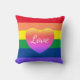 Orgulho gay, travesseiro decorativo arco-íris, com design de coração colorido e roteiro personalizável branco. Um item de decoração de excelente para mostrar seu apoio à igualdade e à comunidade LGBTQ.