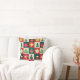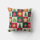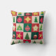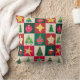 Árvores, ornamentos e estrelas em quadrados vermelhos, verdes e naves criam um travesseiro decorativo bonito e divertido com uma estética do século médio. Perfeito para sua casa de férias.