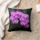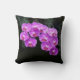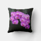 Belo travesseiro decorativo com belas orquídeas púrpuras de falaenopse em cascata em fundo preto. Foto tirada no Jardim Botânico Daniel Stowe, em Belmont, NC. presente de excelente para um amante de orquídea! Fotografia digital por Sue Melvin
