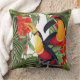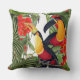 A colagem lindo de belas artes botânicas do vintage de pássaros de Toucan e das folhas tropicais exóticos da selva, com peônia vermelha floresce, está neste travesseiro. As imagens são dominio público devido aos direitos reservados expirados. A colagem é por mim.