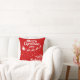 Mostre o quanto você acredita na magia do Natal e Papai Noel com este festivo travesseiro decorativo de Natal vermelho apresentando a silhueta de Papais noeis de trenó em branco com suas renas, voando em um rastro de estrelas. A legenda no topo lê Feliz Natal em letras brancas manuscritas. O texto é facilmente personalizável com seus desejos, ano e nome da família ou nome comercial.