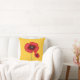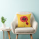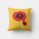 Uma papoila vermelha num travesseiro decorativo amarelo de ouro