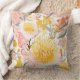 Travesseiro floral com ouro impressionante Banksia floresce com folhagem de cinza e flores cor-de-rosa em um design que equilibra tons de terra com realces florais sutis.
