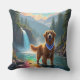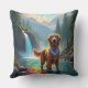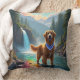 Um belo Ouro Retriever em uma floresta encantada vibrante e rio arco-íris.