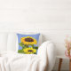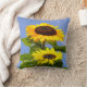 Girassóis brilhantes contra o céu azul de verão. Eles parecem estar levantando seus rostos para o sol. Adicione um feixe de sol de verão à sua casa com este travesseiro de girassol.