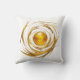 Um travesseiro quadrado com um ouro de arte em forma de sol com abstratos girando ao seu redor.