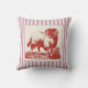 Lindo travesseiro vermelho e branco é uma reminiscência antiquada de um tempo mais simples. O fundo tem a aparência de tecido listrado, e há uma ovelha no centro da parte da frente. Um complemento maravilhoso para o seu estilo cottage chic ou decoração rústica parisiense.